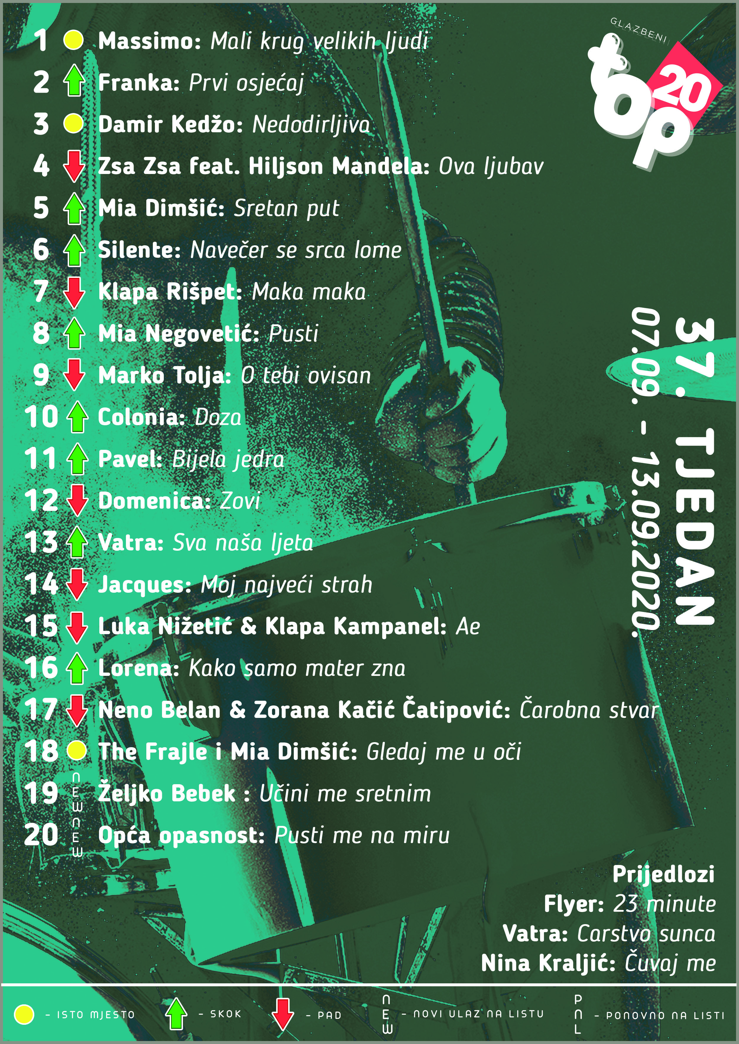Ljestvica Glazbeni Top20, 37. tjedan