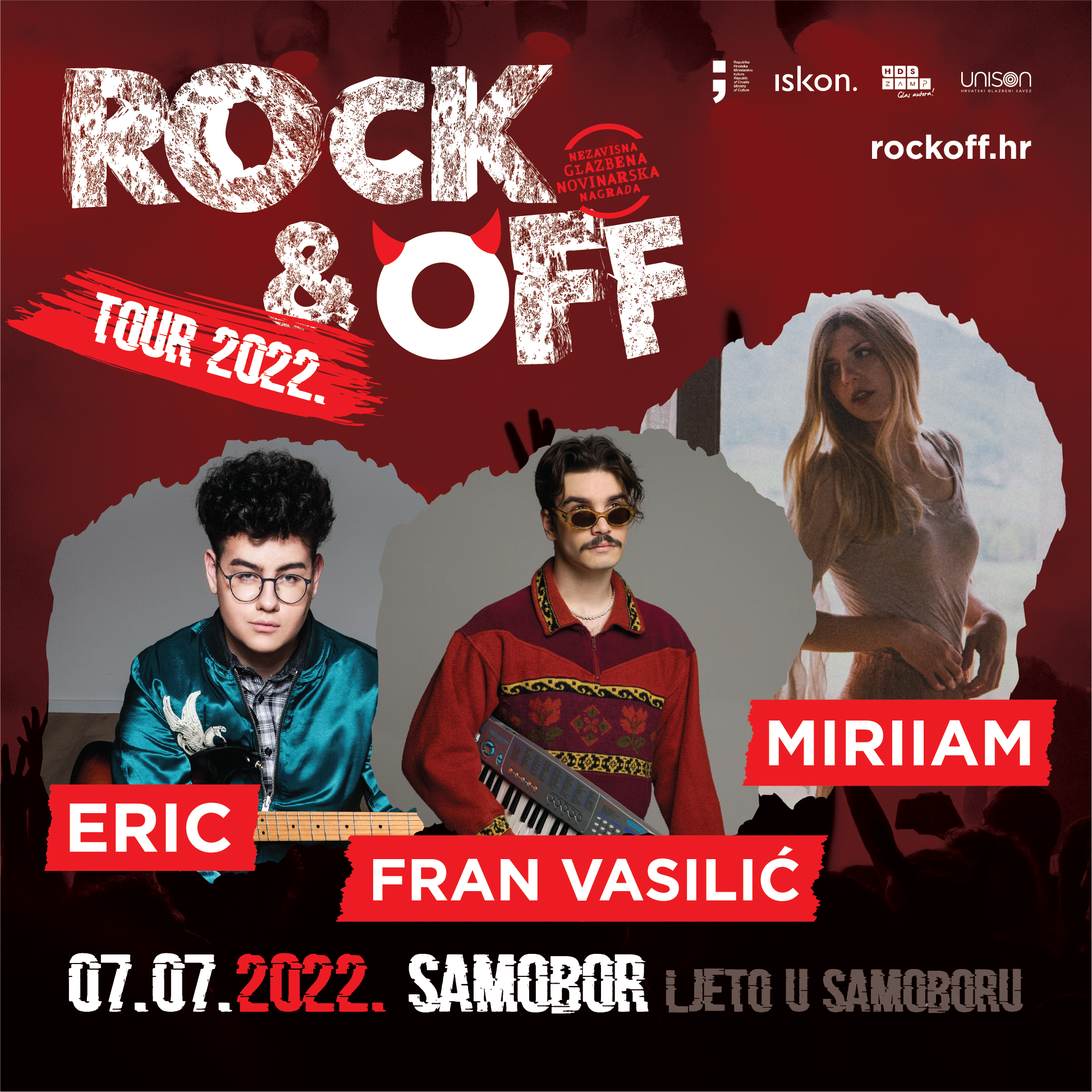 U Samoboru će nastupiti dobitnica ovogodišnje Rock&Off nagrade u kategoriji Velikog praska Miriiam pojačana s odličnim bendom, odličan kantautor ERIC u pratnji izvrsnog benda te skriveni dragulj hrvatske scene Fran Vasilić koji odnedavno nastupa s bendom, u parku kod Samoborskog muzeja s početkom od 21 h.